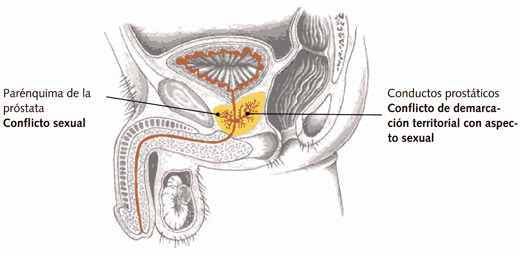 Conflicto con aspecto sexual de no poder demarcar límites (combinación de conflicto de próstata y vejiga).