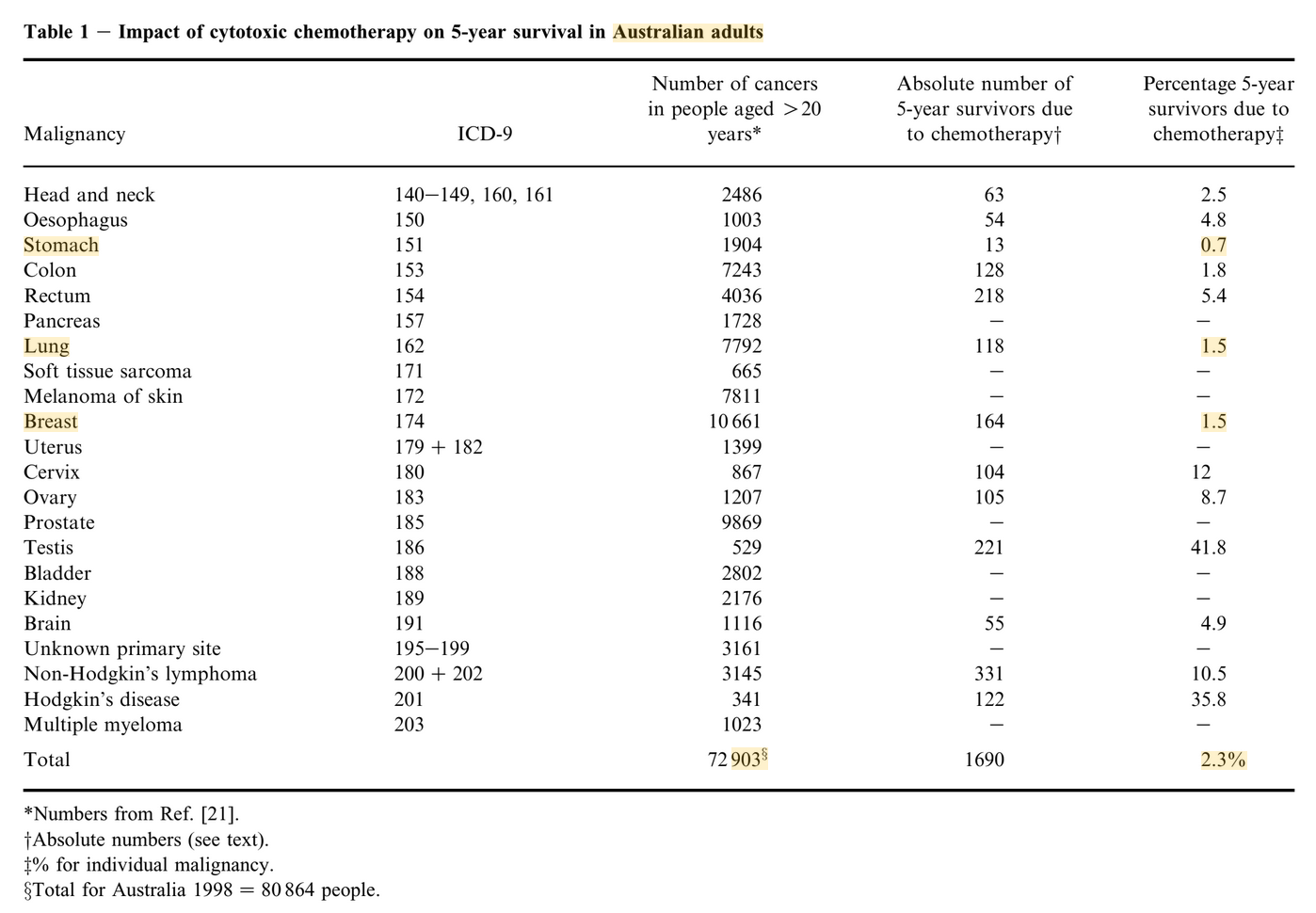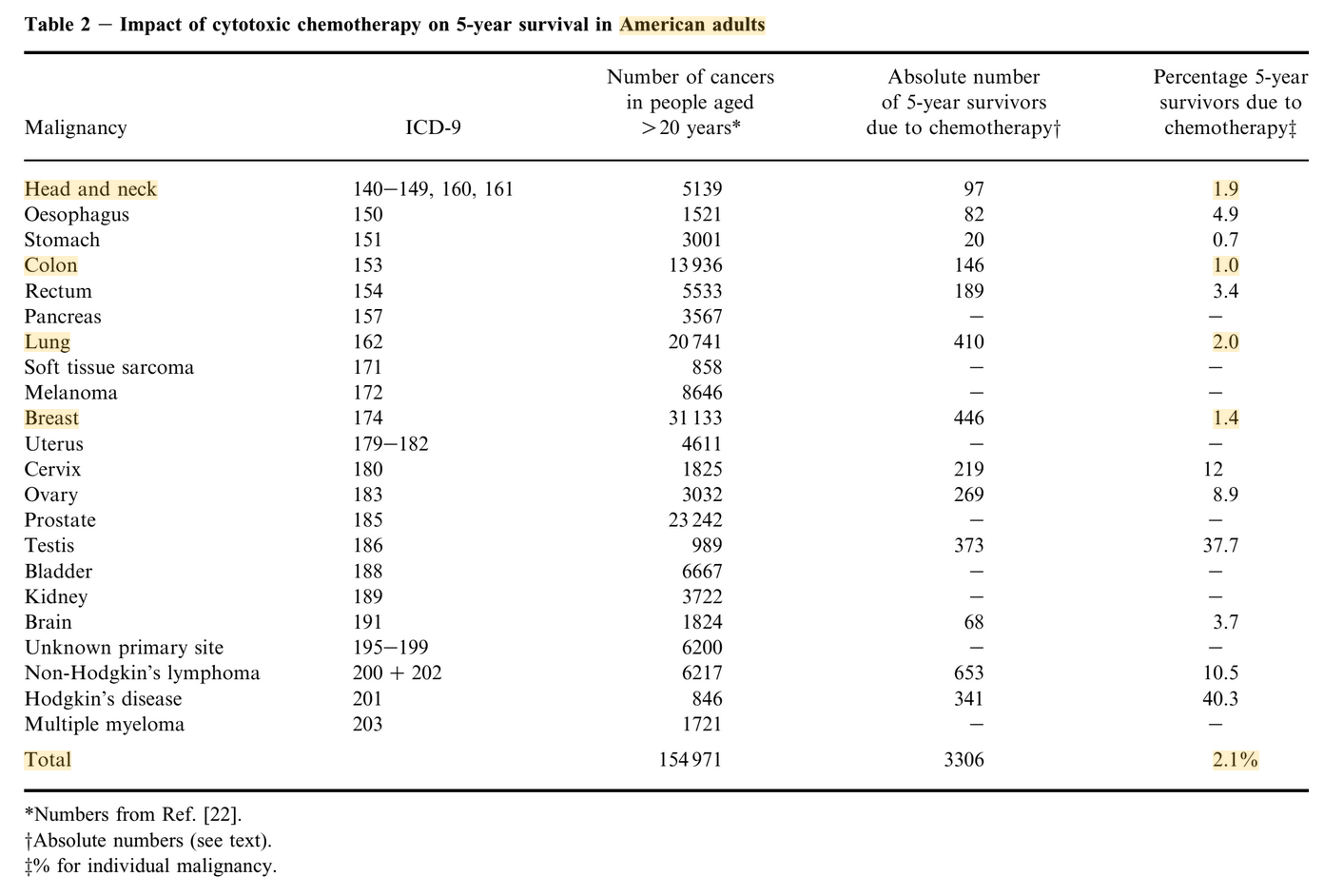 ¡El gobierno de los EE. UU. publicó una artículo científico en su sitio web de los Institutos Nacionales de Salud (NIH) que muestra que en promedio sólo el 2.1% de los pacientes de quimioterapia sobreviven en un tiempo de 5 años!